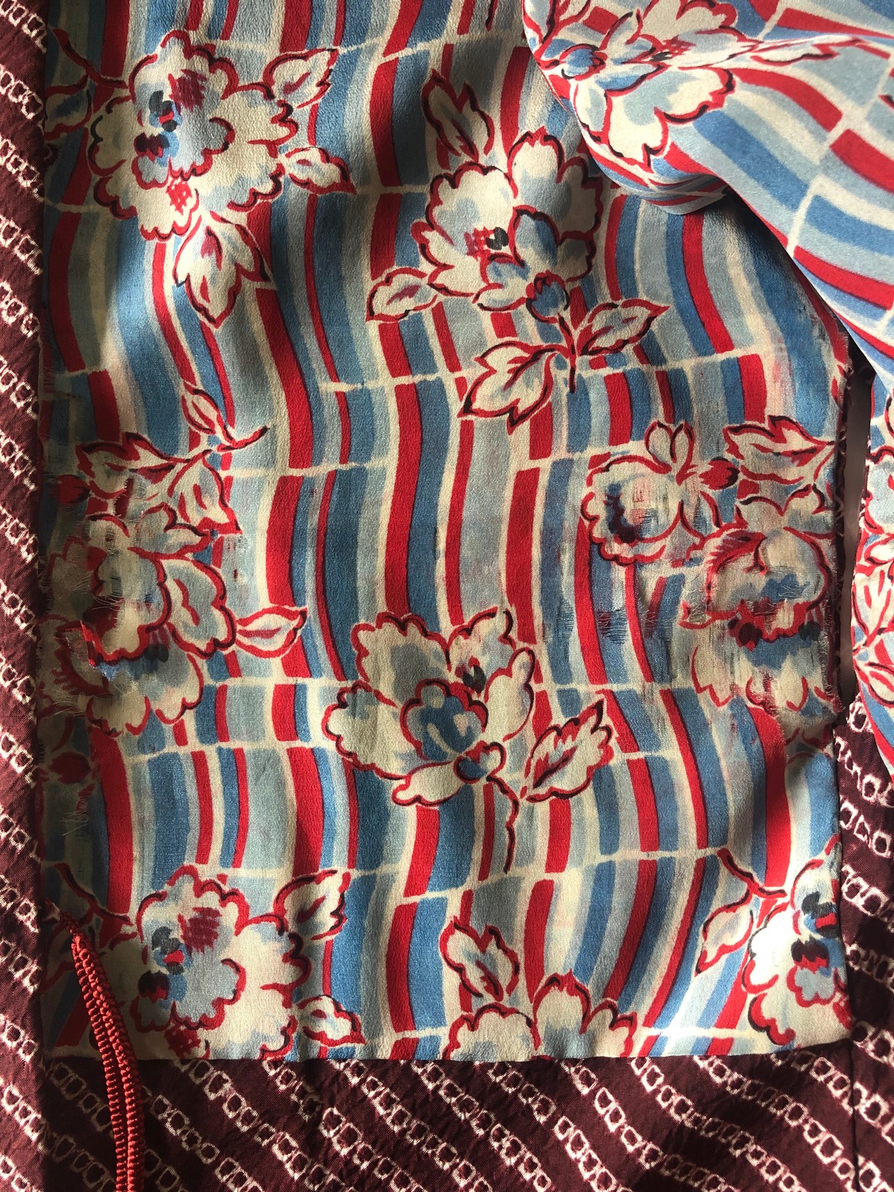 正絹(シルク)羽織りの袖丈を適度にカットし、気軽に羽織れるジャケットを作りました。