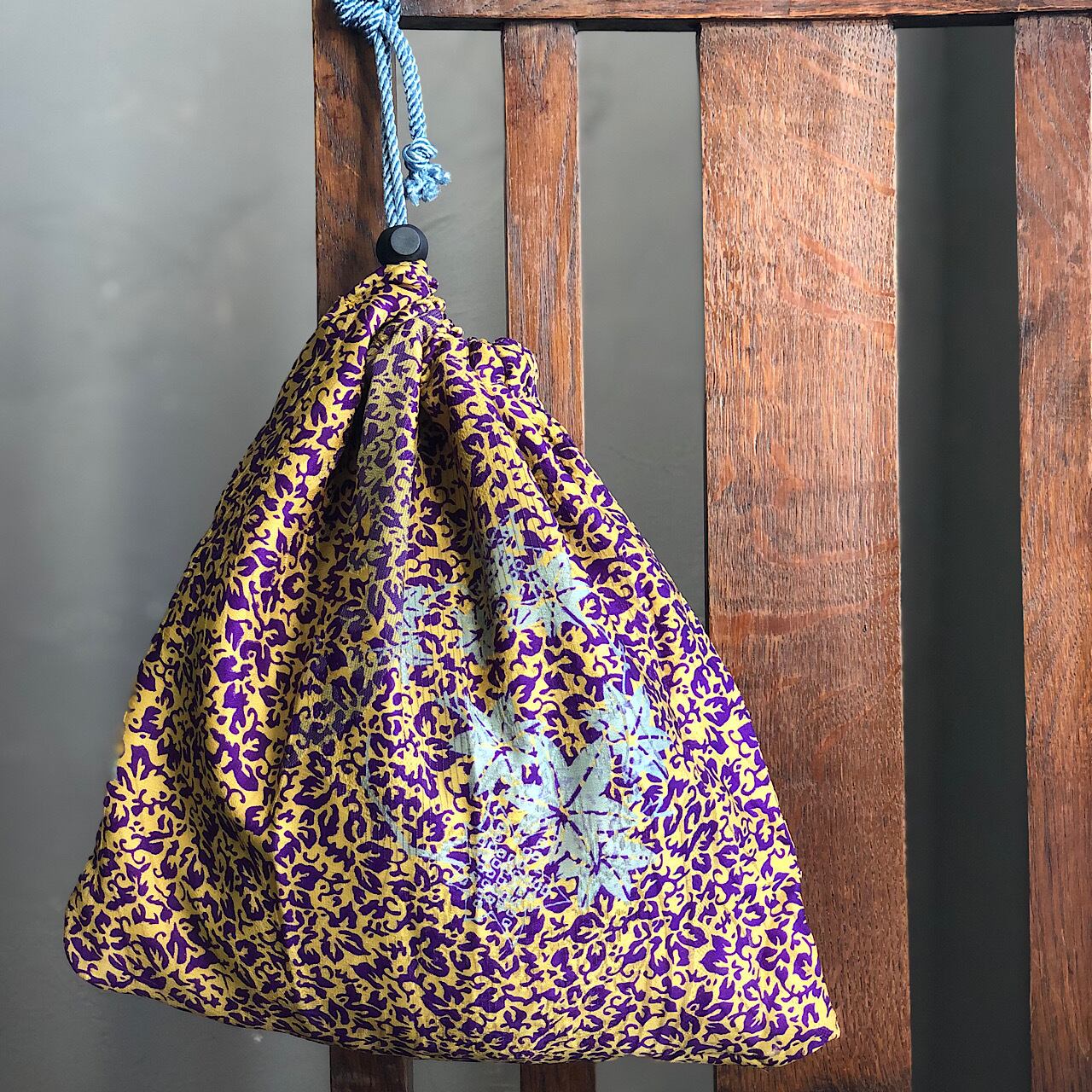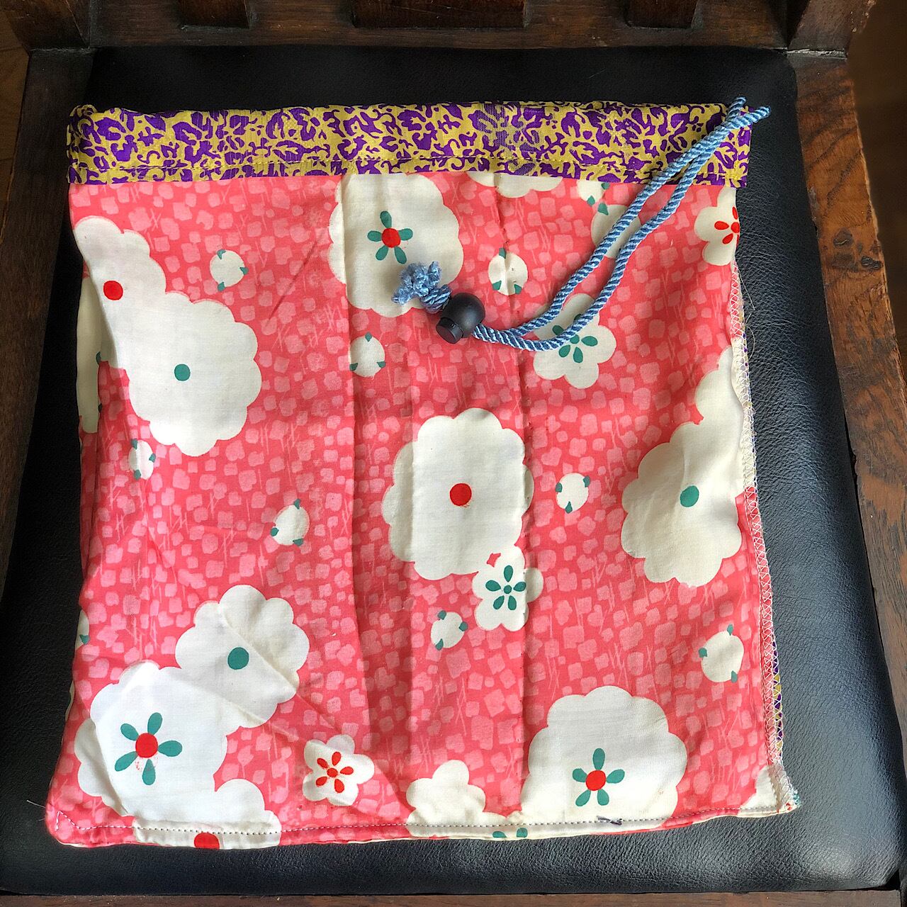 羽織りの袖を巾着袋にリメイクしました。