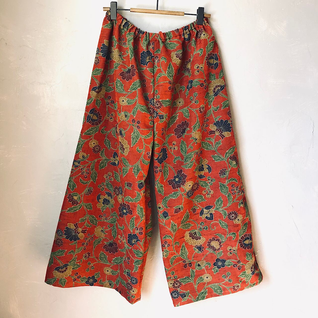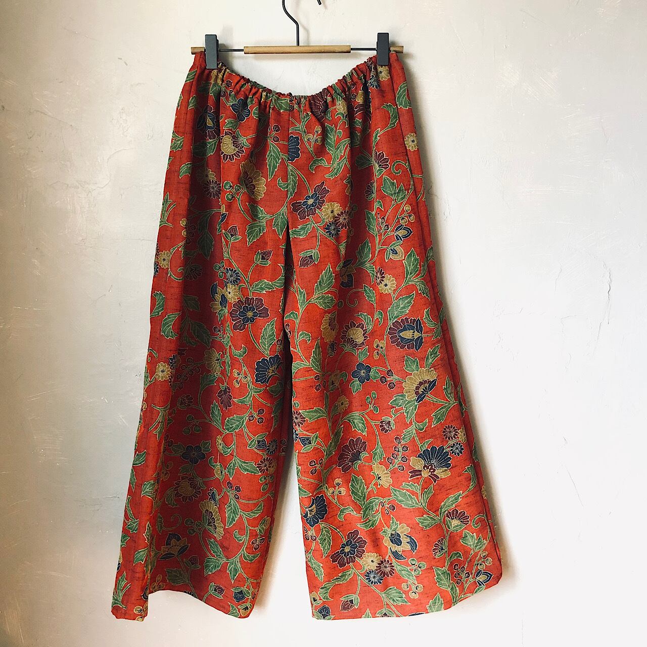 ガウチョパンツ《ウール・花紋》着物リメイク